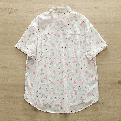 シャツ 半袖シャツ レディース 春夏 半袖 総柄 マルチカラー ナチュラル シャツブラウス ウサギ柄 綿シャツ 可愛い 綿 コットン 折襟 森ガール チュニック ゆったり 体型カバー 着?せ 前開き