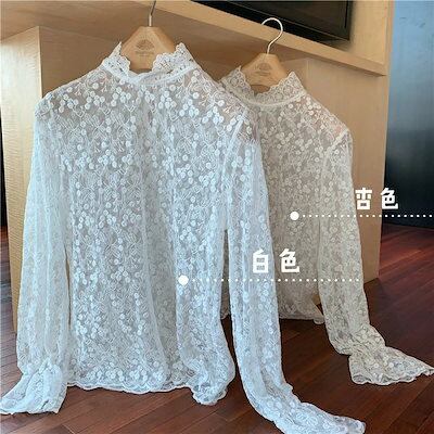 トップス レース シャツ レディース インナーウェア レース ブラック ホワイト ハイネック タートルネック 刺繍 tシャツ 春 秋 フレア袖 長袖 タイト 透け感 セクシー 20代 30代 40代 | koookooo