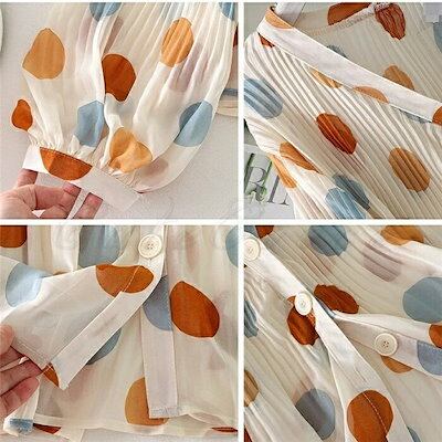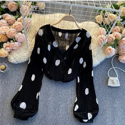 カーディガン レディース 春夏 薄手 UV ブラウス パフスリーブ レディース ブラウス シフォンブラウス 水玉柄 Vネック 長袖 パフスリーブ トップス カジュアル ボタン付き ゆったり 女性用 き | koookooo