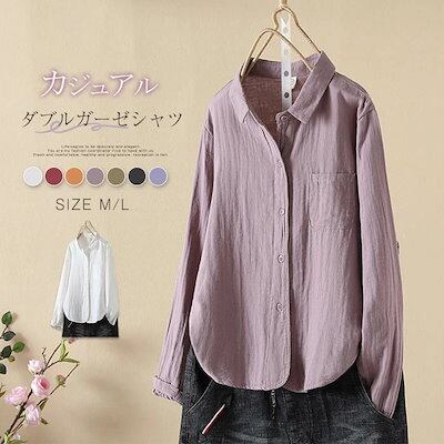 シャツ ダブルガーゼシャツ ガーゼシャツ レディース 前開き 襟付き 綿 コットン トップス ブラウス 無地 長袖 アウター インナー 綿 春 夏 秋 冬 オールシーズ レイヤード 重ね着 大人可愛い | koookooo