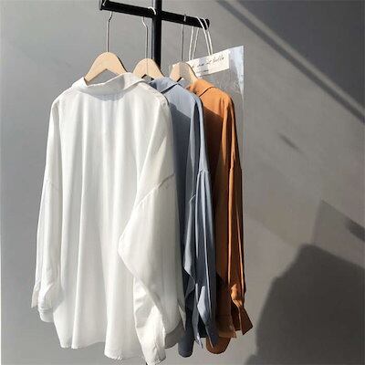 シャツ レディース 長袖 チュニック 春 夏 秋 無地 ブラウス カジュアル ナチュラル 柔かい 4色 ホワイト S/M/L ゆったり 肌に優しい おしゃれ 開襟 仕事着 デーリー 20代 30代 4 | koookooo
