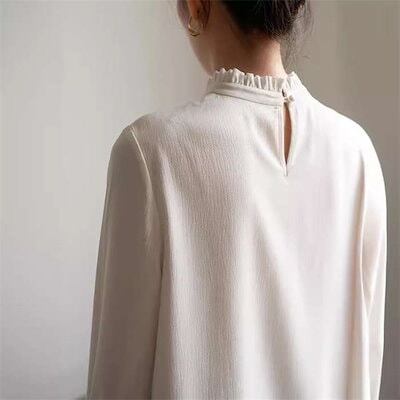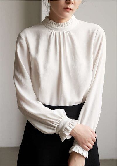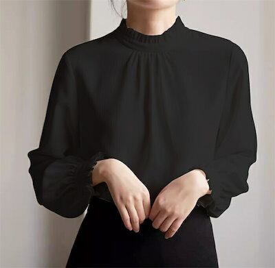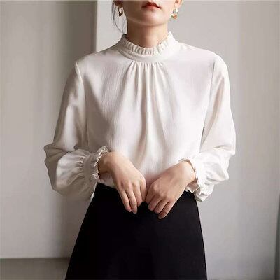 ブラウス レディース 長袖 きれいめ シャツブラウス 春 夏 秋 オシャレ ブラウス 無地 トップス 大人 ゆったり フリル立ち襟 可愛い 通勤 OL 日常着 体型カバー 上品 お洒落 オフィス スー | koookooo