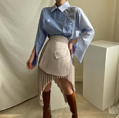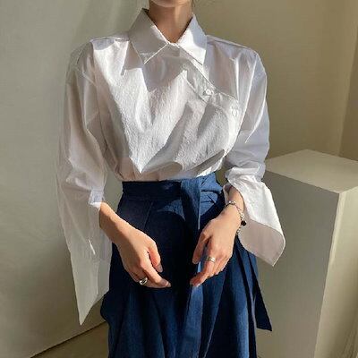 シャツ ブラウス レディース 春 秋 長袖 ストライプ柄 トップス とろみシャツ おしゃれ 春秋 Tシャツ ストライプ フェミニン 個性的 着回し デザインシャツ 体型カバー ゆったり シンプル おし | koookooo