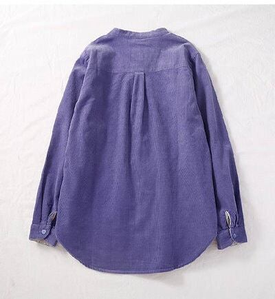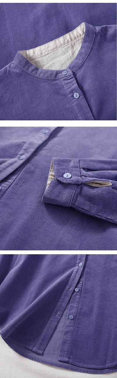 シャツ コーデュロイ シャツ レディース ブラウス 長袖 ブラウス バンドカラー スタンドカラー コーデュロイシャツ 春 秋 冬 立ち襟 無地 トップス 大きいサイズ ゆったり オシャレ シンプル カ | koookooo
