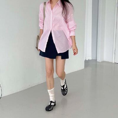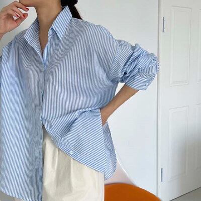 シャツ ブラウス レディース ストライプ柄 春 夏 秋 トップス 長袖 薄手 フェミニン 着回し シンプル おしゃれ 大人 カジュアル こなれ感 春 夏 トレンド感 オフィス フォーマル ビジネス 通 | koookooo
