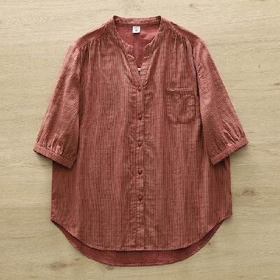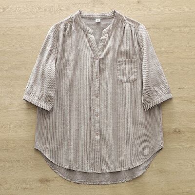 ダブルガーゼ シャツ ブラウス レディース ストライプ柄 綿 半袖 春 夏 秋 トップス ガーゼ 半袖 薄手 フェミニン 着回し シンプル ナチュラル 大人 バイカラー カジュアル こなれ感 森ガール | koookooo