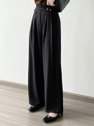 タックワイドパンツ レディース パンツ ワイドパンツ ロングパンツ 春 秋 ゆったり 体型カバー 着?せ テーラード ボトムス ズボン カジュアル 通勤 仕事 ビジネス オフィス 事務所 OL 上 | koookooo