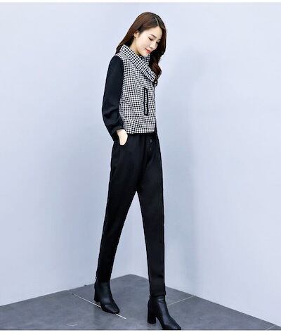 パンツスーツ セットアップ パンツドレス レディース パーティードレス レギンスパンツ スキニーパンツ 大きいサイズ ハイネック シャツ ブラウス ロング パンツ 2点セット 長袖 春 夏 秋 冬 オ | koookooo