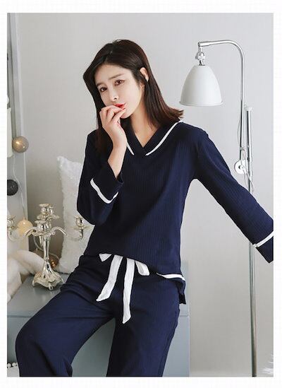 コットン パジャマ レディース 2点セット ルームウェア セットアップ スウェット カットソー Vネック ロングパンツ ナイトウェア 長袖 パンツ 部屋着 柔らかい 可愛い 春 秋 冬 | koookooo