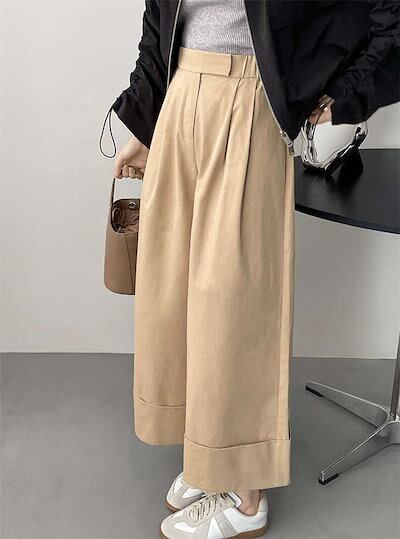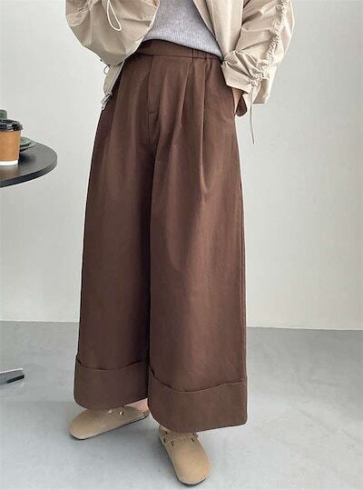 ワイドパンツ レディース 春 夏 秋 パンツ ロングパンツ ボトムス リラックスパンツ ウエストゴム ポケット タックパンツ コットン 綿 無地 フレアパンツ ガウチョ 落ち感 オフィス カジュアル | koookooo