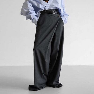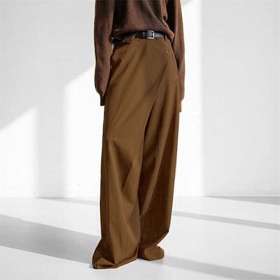 ワイドパンツ パンツ レディース ロング丈 カフェパンツ ラップパンツ ボトムス 無地 モード 春 夏 秋 冬 タックパンツ スラックス ガウチョパンツ オールシーズン 重ね着風 体型カバー きれいめ | koookooo
