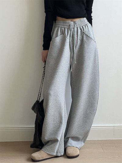ワイドパンツ ストレートパンツ レディース ロング丈 ポケット付き 春 秋 冬 スウェット 無地 シンプル ジャージーパンツ ボトムス ストレート イージーパンツ ウエストゴム ワイド 大きいサイズ | koookooo
