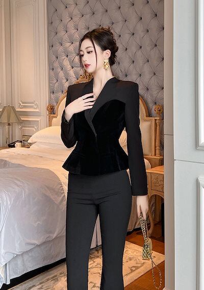 GORGE【Gorge.上品】 春 スーツトップス ベルベット フリル モデルのワンピースとパンツも購入可能です おしゃれ レディース スーツ