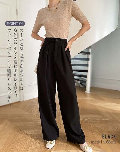 タックパンツ レディース タックワイドパンツ ワイドパンツ イージーパンツ パンツ ズボン ワイド ボトムス ロング ロングパンツ 春 秋 冬 無地 ロング ロングパンツ お仕事 大人 おしゃ | koookooo