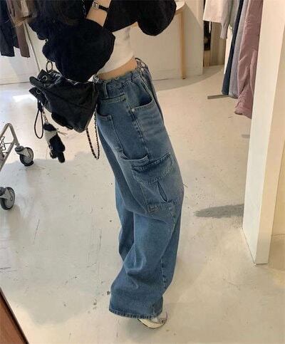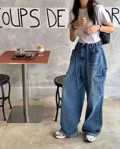 ワイドパンツ カーゴパンツ レディース ロング丈 デニム 春 秋 無地 シンプル ワークパンツ ゆるっと ジーンズ シンプル 秋冬 ワイド 大きいサイズ ハイウェスト 美脚 おしゃれ 通勤 流行 トレ | koookooo