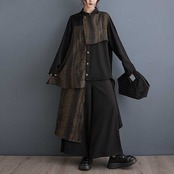「ファットガール」 2024春 上下セット ブラウス+ワイドパンツ 体型カバー レディース セットアップ