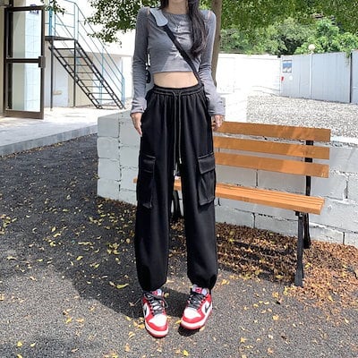 レトロ カジュアル カーゴパンツ レディース 春秋 ハイウェスト 着痩せ スト レート ワイドパンツ