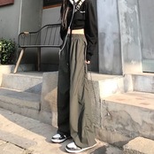 レディース 夏 ストレート ハイウェストカーゴパンツせ カジュアル ジョガーパンツ ゆったり原宿風 ズボン ヒップホップストレートパンツ