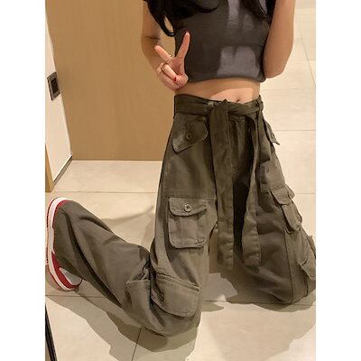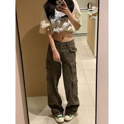 韓国ファッション ゆったり ワイドデニム レディース ワイドパンツ カジュアル ハイウエスト ロングパンツ 大きいサイズカーゴパンツ