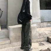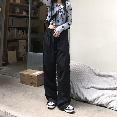 レディース ファッションストリート風ミリタリーパンツカーゴパンツハイウエストワイドパンツカジュアルゆったり