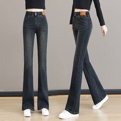 スキニーパンツ春新作レディースハイウエストカジュアル馬蹄フレアパンツ