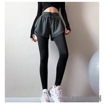 新生活 スポーツウェア レディース ヨガパンツ ショートパンツ付 一体型レギンス フィットネス ジム 運動 ストレッチ 通気性 吸汗速乾 トレーニング プレゼント ギフト