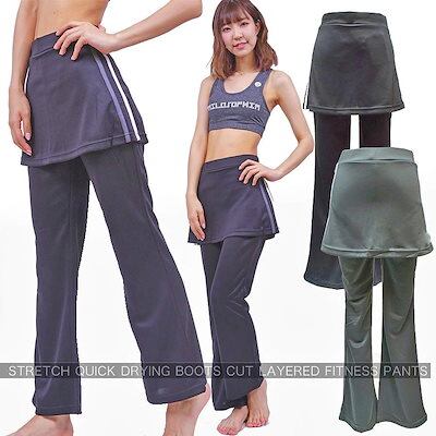 スカート付き パンツ レディース ヨガパンツ ヨガウェア スカッツ ブーツカット フィットネス ヨガウエア 美脚 スポーツウェア ホットヨガ ダンス 社交ダンス 衣装 ストレッチパンツ フレア ジャー