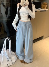 2024 夏パンツ ロング丈 ワイド ストレート ハイウエスト 美脚効果 脚長効果 細見え 夏 水色 黒 緑 おしゃれ かわいい 韓国ファッション レディース お出かけ