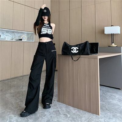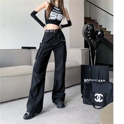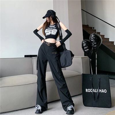 2024春夏 ダボっと可愛い ボトムス カーゴパンツ ロングパンツ ルーズ パンツ ボトム ズボン ルーズ メンズライク トレンド シンプル カジュアル ファッションズボン ブラック ダボかわ | koookooo
