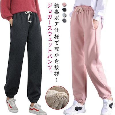 一部の現物は1〜3日で出荷される レディース 裏ボア スウェットパンツ ジョガーパンツ 裏起毛 暖パン 暖かいパンツ 無地 部屋着 テーパードパンツ ウエストゴム カジュアル