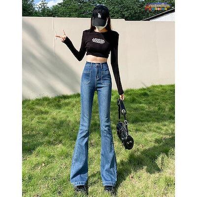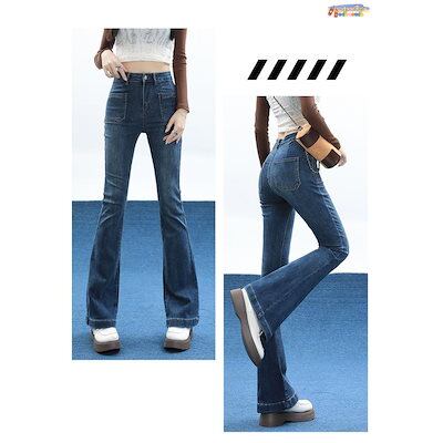 デニムパンツ フレアパンツ レディース デニム ボトムス おしゃれ きれいめ 薄手 シンプル ストレッチ 伸縮性 黒
