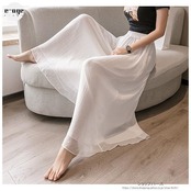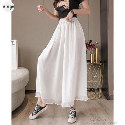 新品の買い占め スカーチョ ワイドパンツ ガウチョパンツ スカンツ レディース フレアパンツ ロング丈 シフォン ウエストゴム 着痩せ 体型カバー ゆったり 春 夏
