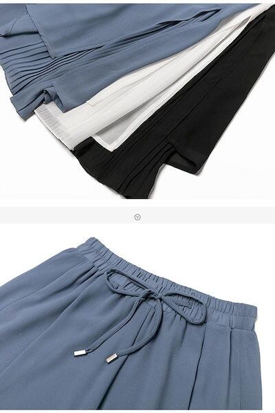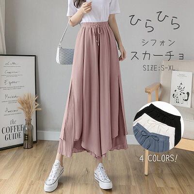 スカーチョ レディース シフォン フレアパンツ 9分丈 ハイウエスト パンツスカート ウエストゴム 薄手 ワイドパンツ Aライン プリーツ ガウチョパンツ ロングパンツ パンツ ガウチョ ドロスト ロ | koookooo