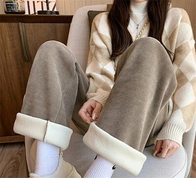 パンツ レディース 秋冬 ロングパンツ ガウチョパンツ 体型カバー 秋 裏起毛 ワイドパンツ 冬 暖か 暖かい 厚手 パンツ ガウチョパンツ コーデュロイ 体型カバー ゆったり 大きいサイズ 冬 秋 | koookooo