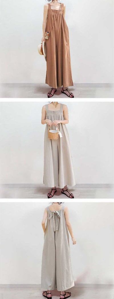 サロペット パンツ オールインワン レディース 春 夏 サロペットパンツ オーバーオール パンツドレス ワイドパンツ ガウチョパンツ ゆったり 着痩せ 通勤 通学 おしゃれ カジュアル 着心地いい 肌 | koookooo