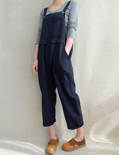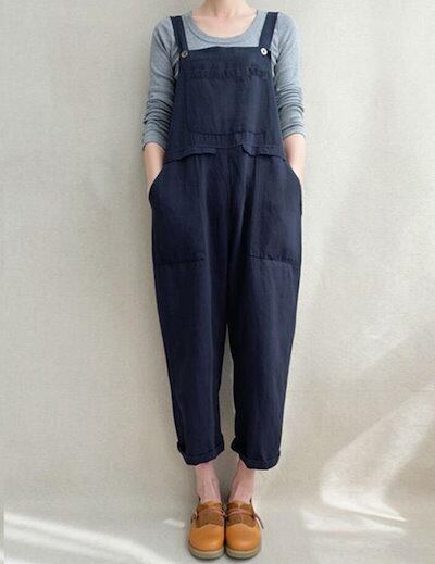オールインワン サロベット レディース 綿麻混 オーバーオール ハロンパンツ ガウチョパンツ ゆったり 大きいサイズ 可愛い 大人 オーバーオール サロベット レディース 綿麻混 春夏 | koookooo