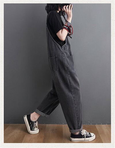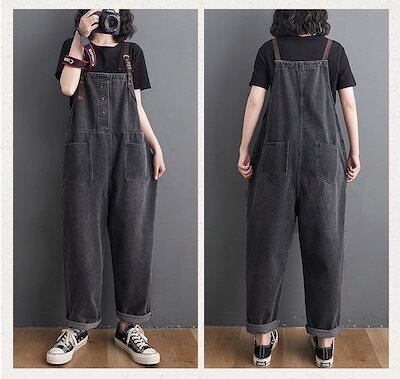 サロペット ロングパンツ レディース オールインワン デニムパンツ ワイドパンツ サロペット オーバーオール 無地 ロング ガウチョパンツ ボトムス 体型バー ゆったり 大きいサイズ 着痩せ ポケット | koookooo