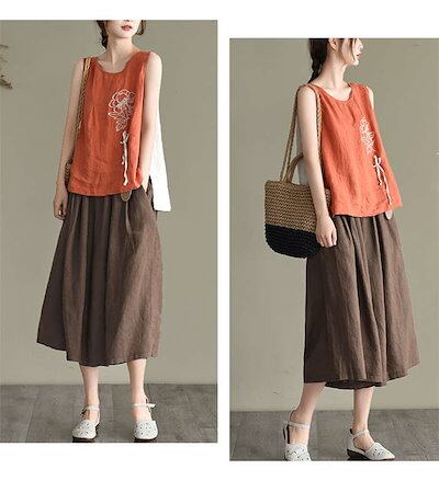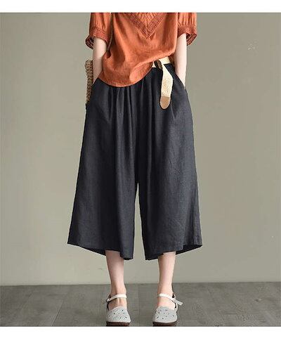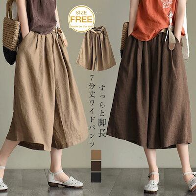 ワイドパンツ レディース 春 夏 綿麻 7分丈 ガウチョパンツ リネン コットン 体型カバー おしゃれ ゆったり カジュアル ナチュラル カジュアル 着痩せ ボトムス 無地 春物 春 夏 秋 ゆる 大 | koookooo