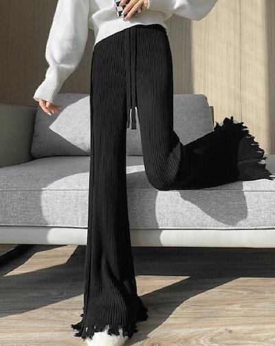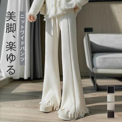ワイドパンツ レディース ニットパンツ 春 秋 ニット パンツ ロング丈 レディース ガウチョパンツ 春秋 パンツ フリンジ あったか リブニット ワイドパンツ 無地 キレイめ ハイウエスト 美脚 ロ | koookooo