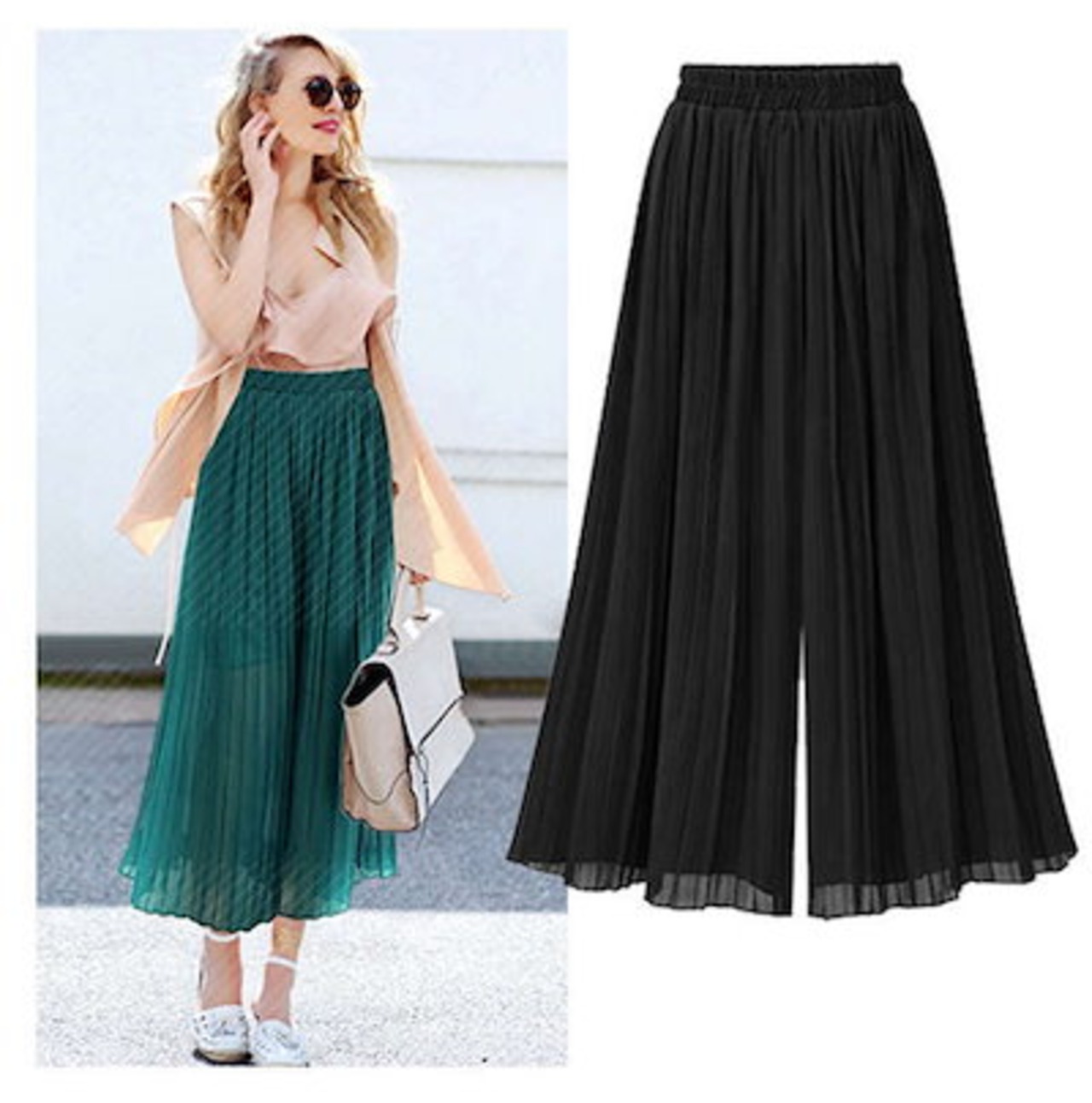 プリーツパンツ ワイドパンツ リラックスパンツ フレアパンツ シフォン ガウチョ スカーチョ プリーツ パンツ 春 夏 レディース きれいめ 可愛い 無地 大きいサイズ 体型カバー おしゃれ ゆった | koookooo