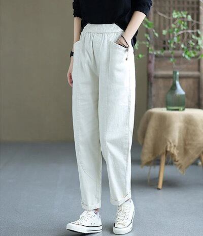 チノパンテーパードパンツイージーパンツズボンボトムスレディースワイドルーズロールアップストレッチ伸縮性コットン綿ゆったり体型カバーオールシーズン秋オシャレカジュアルシンプル大人オフィス20304050 | koookooo