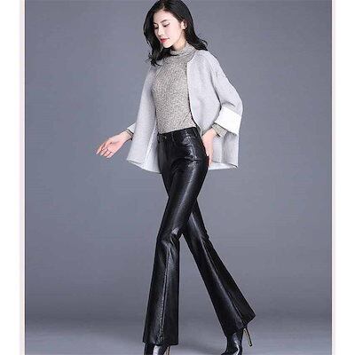 大人気 上品 レザーパンツ レディース フレアパンツ レギンス スキニー ストレッチ ロングパンツ フェイクレザー 着痩せ カジュアル 秋冬