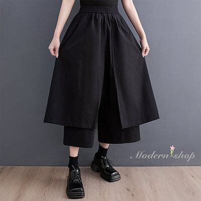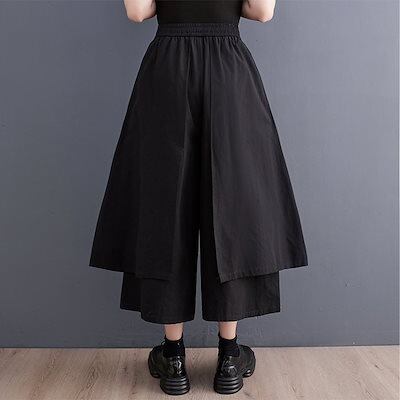 レディース 黒 ワイドパンツ パンツ きれいめ ガウチョパンツ スカーチョ バギーパンツ 大きいサイズ テーパードパンツ 夏 ウエストゴム ロング大人気 ボトムス ロールアップ ノアール サルエル 大 | koookooo