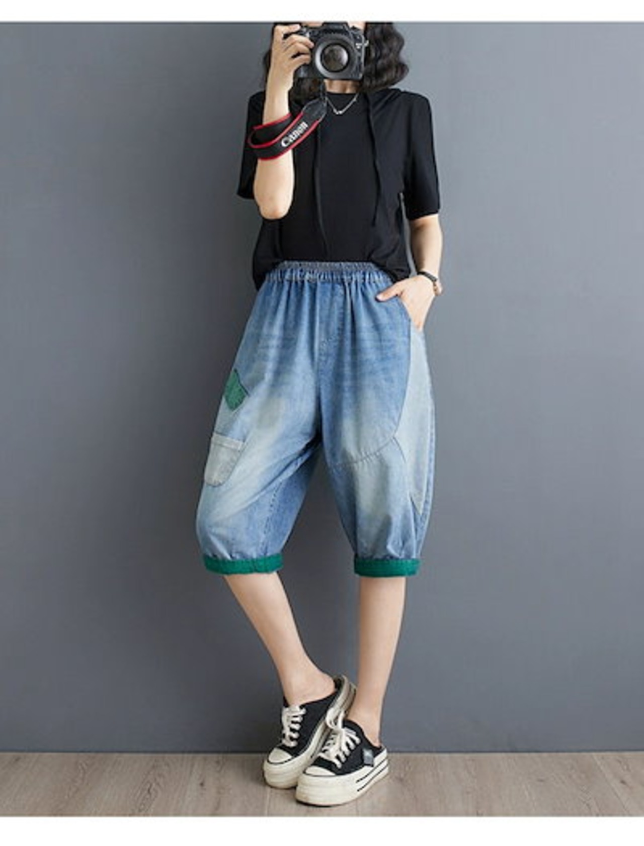 デニム ショートパンツ レディース パンツ デニムハーフパンツ 夏 女の子 ワイドパンツ きれいめ ガウチョパンツ スカーチョ バギーパンツ 大きいサイズ テーパードパンツ 無地 ウエストゴム 大人気 | koookooo