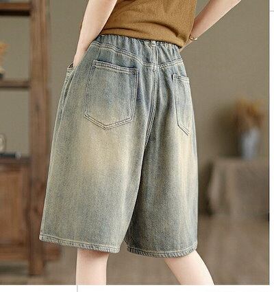 夏 デニム ハーフパンツ ショートパンツ デニムパンツ レディース ワイドパンツ きれいめ ガウチョパンツ スカーチョ バギーパンツ 大きいサイズ カジュアル 切替え 無地 ウエストゴム 大人 ボトム | koookooo