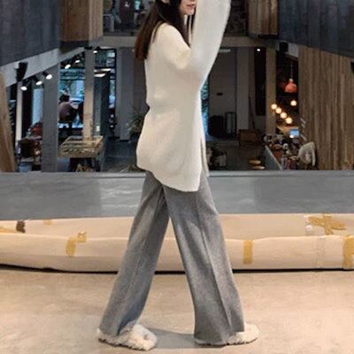 ワイドパンツ レディース ニットパンツ ゆったり 秋 冬 イージーパンツ 春 ストレートパンツ 美脚 カジュアルパンツ ニット 体型カバー ロングパンツ バギーパンツ お洒落 シンプル ニットワイドパ | koookooo