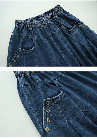 デニム ワイドパンツ デニムパンツ レディース ガウチョパンツ ジーンズ ゆったり ボトムス ジーパン 大きいサイズ バギーパンツ イージー 柔らか デニム 森ガール ズボン ウエストゴム 体型カバー | koookooo