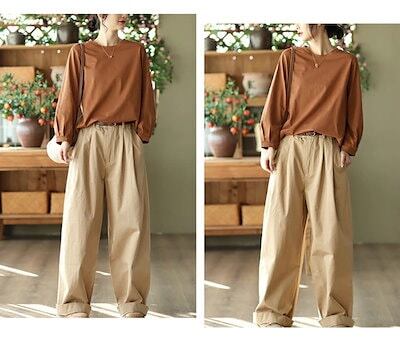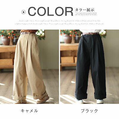 ワイドパンツ レディース 秋 きれいめ ワイドルーズ 綿 バギーパンツ イージーパンツ チノパン 美脚パンツ 長ズボン ウエストゴム ゆったり 通勤 大きいサイズ 体型カバー コットン 大人 ビジネス | koookooo
