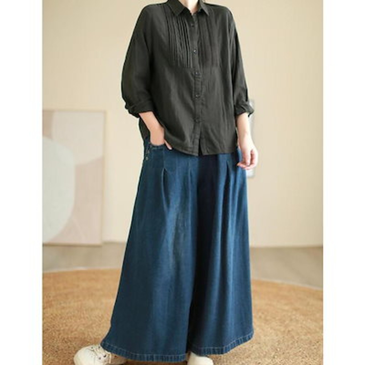 デニム ワイドパンツ レディース ガウチョパンツ デニムパンツ ゆったり ボトムス ジーパン ジーンズ バギー イージーパンツ
