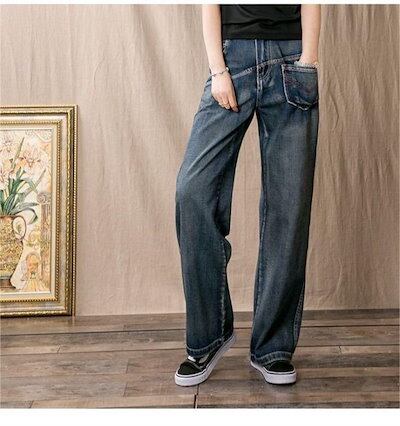 デニムパンツ レディース ワイド ジーンズ ゆったり バギー ボトムス チノパン 大きいサイズ ワイドパンツ 春 カジュアル ズボン ウエストゴム 大きいサイズ 柔らかいデニム ゆったり 体型カバー | koookooo